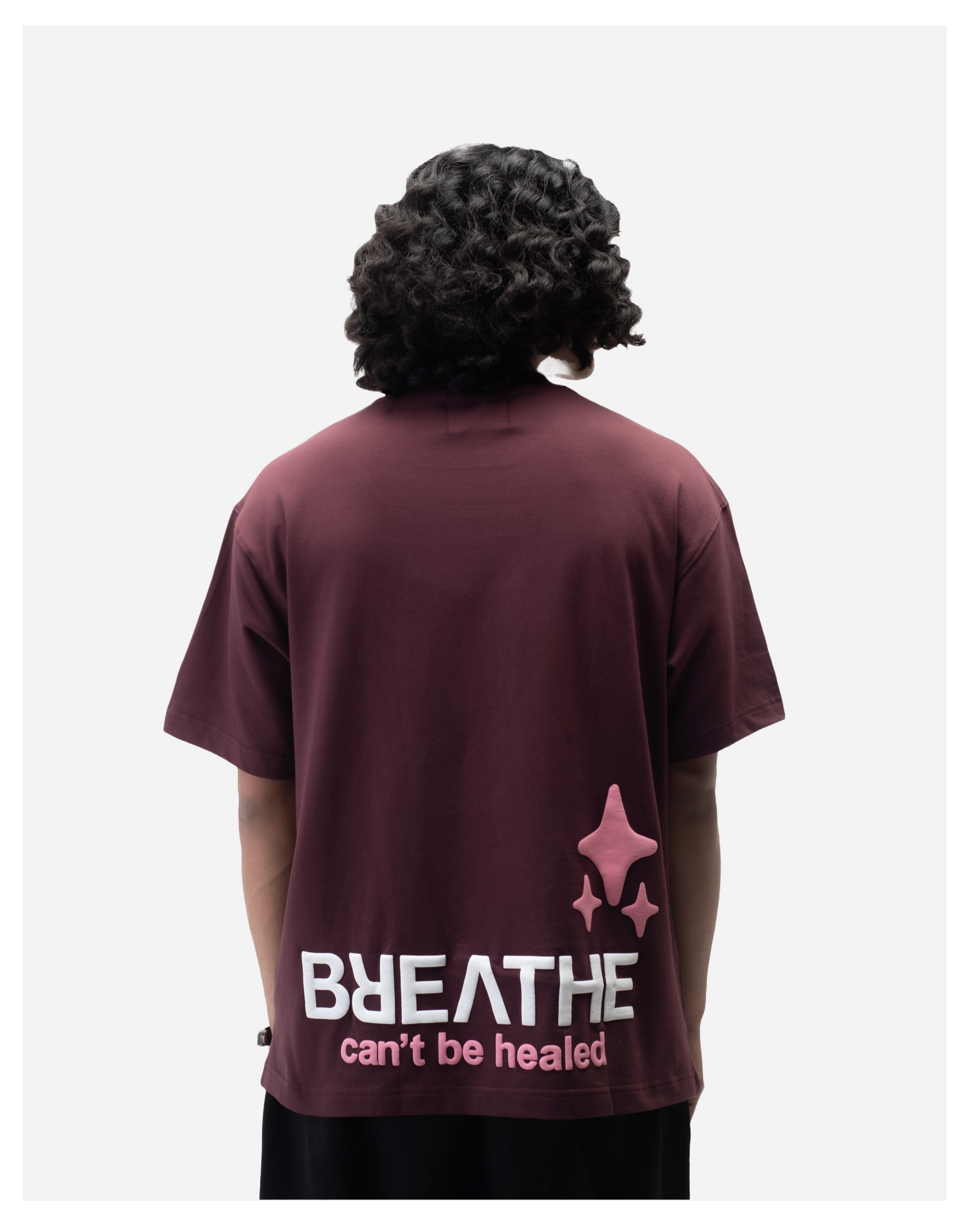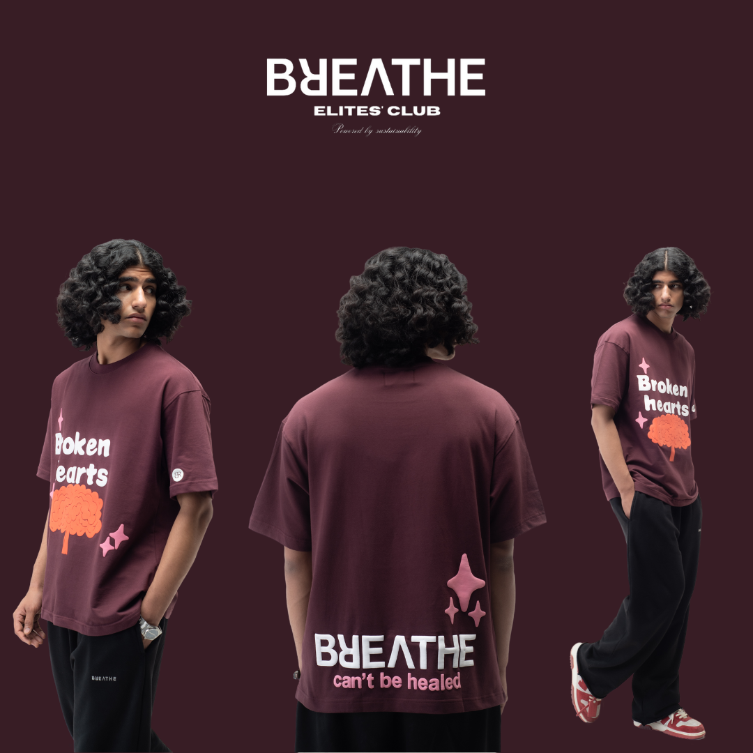 This T-shirt communicates the most reminiscing feeling, As “broken hearts can’t be healed once broken”. The burning volcano truly contrasts the rising pink star which is a perfect definition of how once broken, can’t be healed.