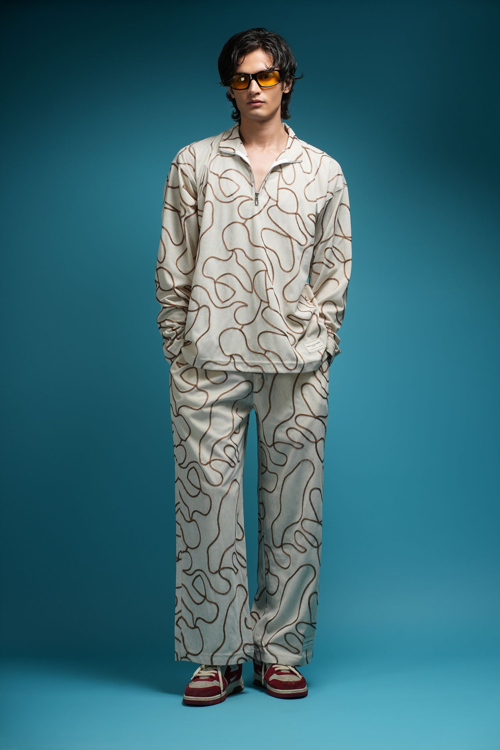 - THE IVORY SMOKE EDITION OF OUR DESERT THREAD SERIES PAIRS UNDERSTATED ELEGANCE WITH ELEVATED CRAFTSMANSHIP. THE SET FEATURES INTRICATE ALL-OVER CHAIN-STITCHED EMBROIDERY — A FREEFORM EXPRESSION OF MOVEMENT, ETCHED INTO FABRIC LIKE DESERT WINDS TRACING UNTOUCHED LANDSCAPES. FINISHED WITH OUR SIGNATURE THEBREATHEMOVEMENT LABEL — THIS SET IS MADE FOR THOSE WHO CARRY STILLNESS, EVEN IN MOTION.