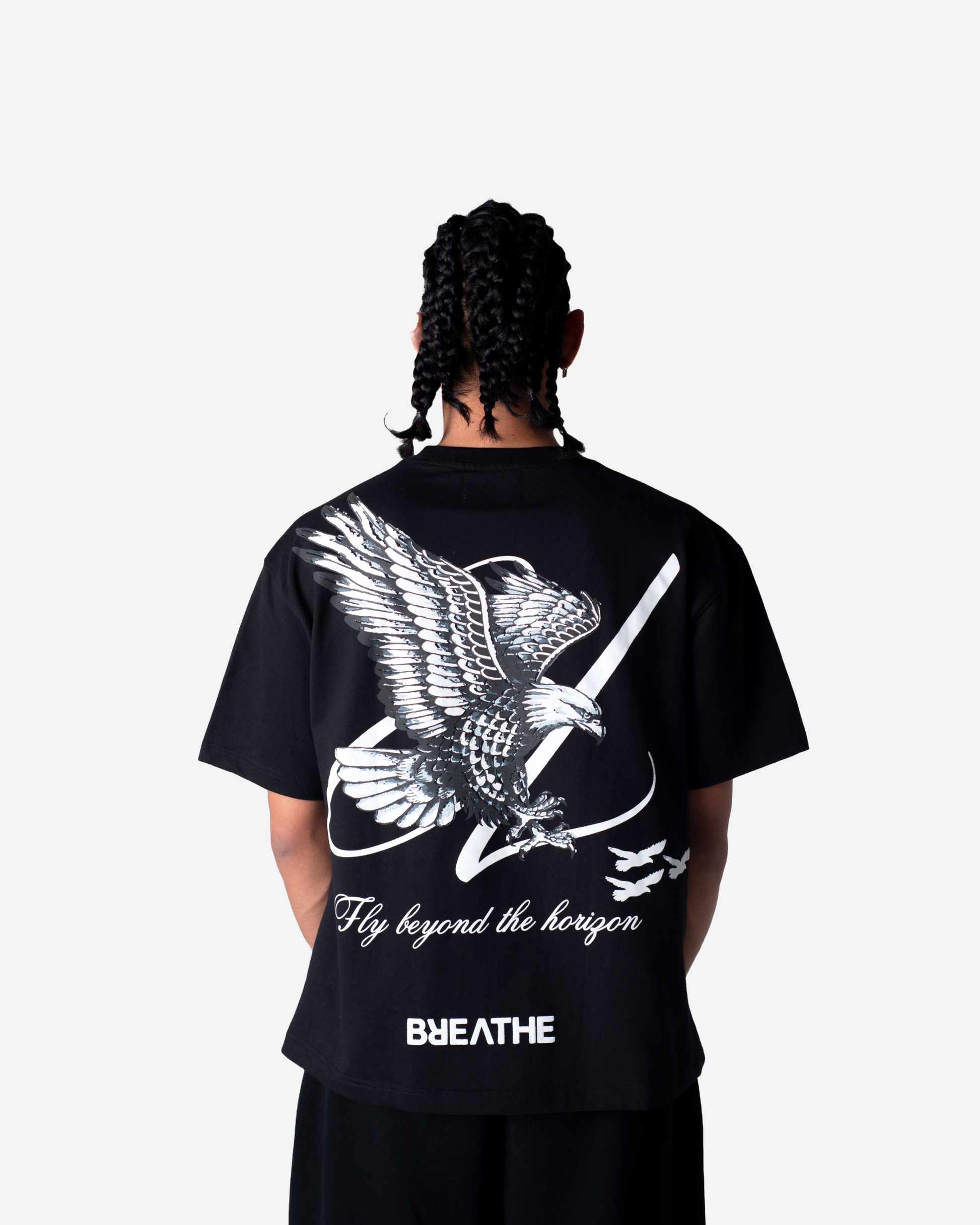 Like the mighty eagle, men embody strength, courage, and determination as they navigate the challenges of life’s vast expanse. In the realm of nature, the eagle stands as a symbol of freedom and independence, traits echoed in the spirit of men who carve their own paths and forge their destinies with unwavering resolve. The mere representation of eagles on the back and sleeves of the t-shirts truly communicates the confidence, clarity of vision & freedom to get ready to take flight and be victorious! (winging it never feels so good.