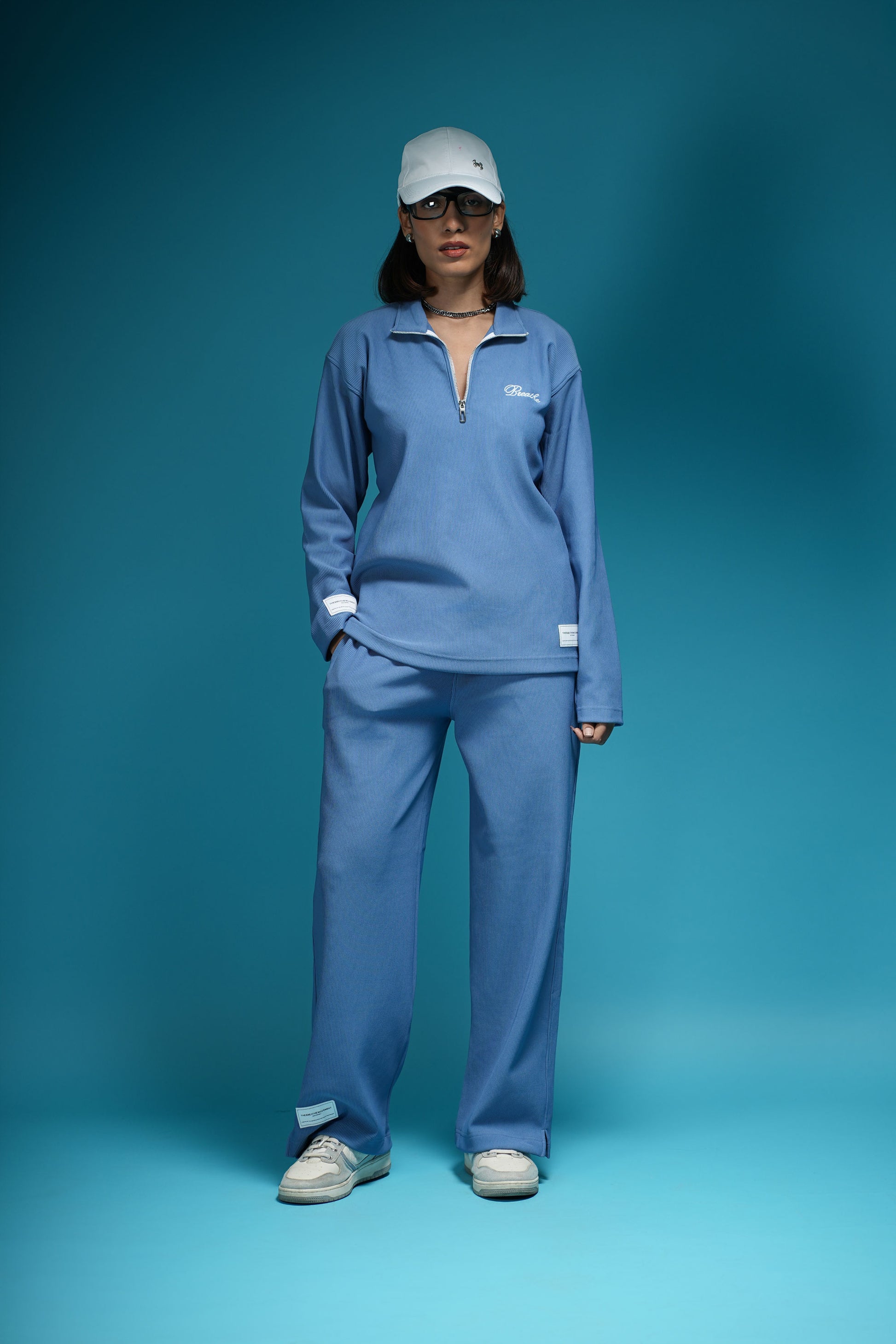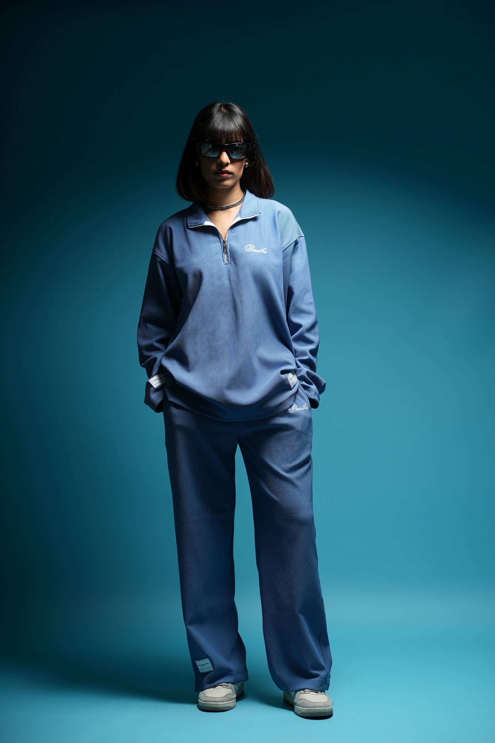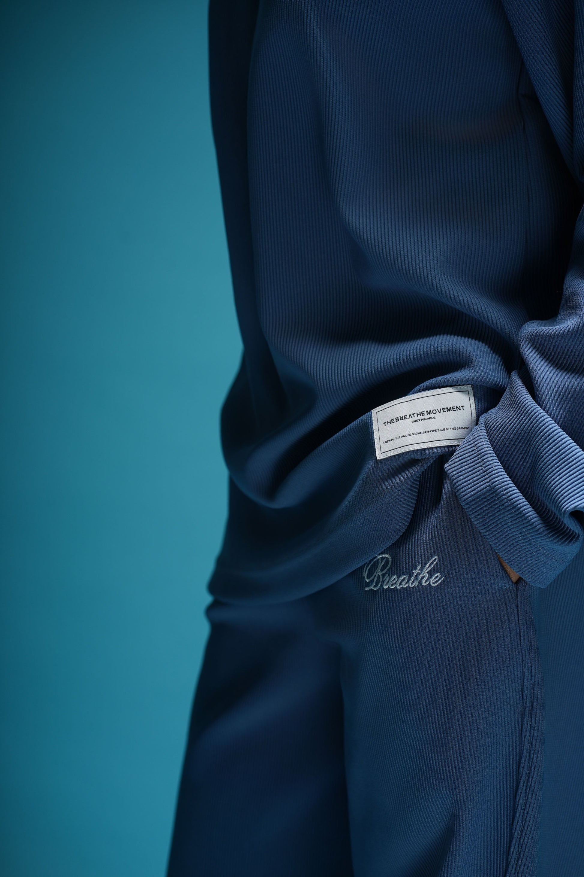 DESIGNED FOR THE MODERN ELITE, THE TBM CORD SET IN AZURE HAZE(CLOUD BLUE) IS YOUR GO-TO FOR FIRST-CLASS TRAVEL, LUXURY GETAWAYS, AND SPORT-LUXE MOMENTS — FROM PRIVATE JETS AND COASTAL GOLF CLUBS TO PADDLE COURTS IN THE SOUTH OF FRANCE. TAILORED IN OUR CUSTOM-DEVELOPED CORD LYCRA FABRIC, USING IMPORTED PREMIUM YARN FROM JAPAN, IT OFFERS UNMATCHED COMFORT, SOFTNESS, STRETCH, AND REFINED STRUCTURE. THE 90S-INSPIRED BOXY TOP AND WIDE-LEG SILHOUETTE EXUDE RELAXED OPULENCE, MAKING IT THE PERFECT STATEMENT FOR THOSE WHO LIVE AND MOVE BOLDLY. FINISHED WITH OUR ICONIC THEBREATHEMOVEMENT LABEL, THIS SET ISN’T JUST WORN — IT’S EXPERIENCED.