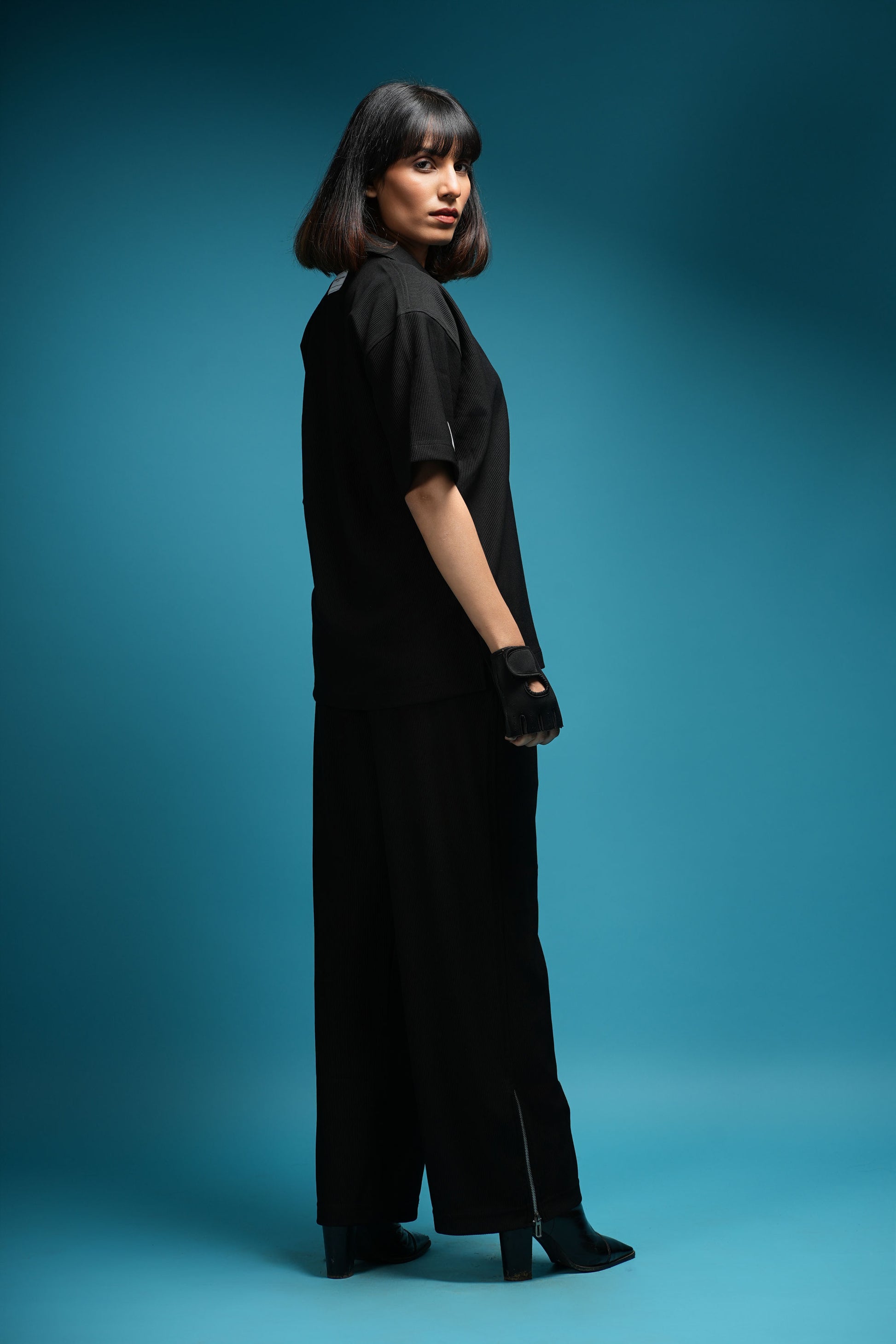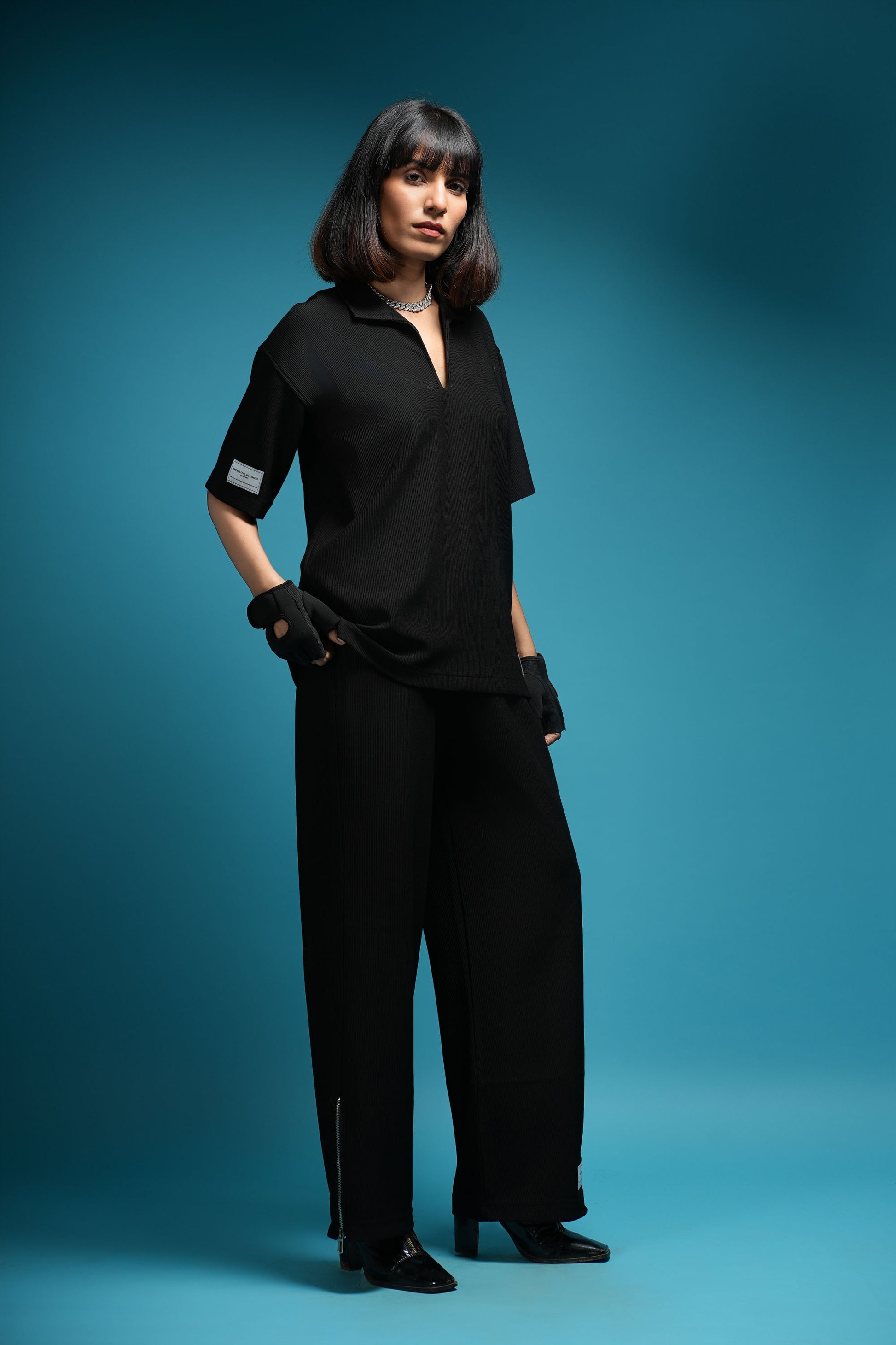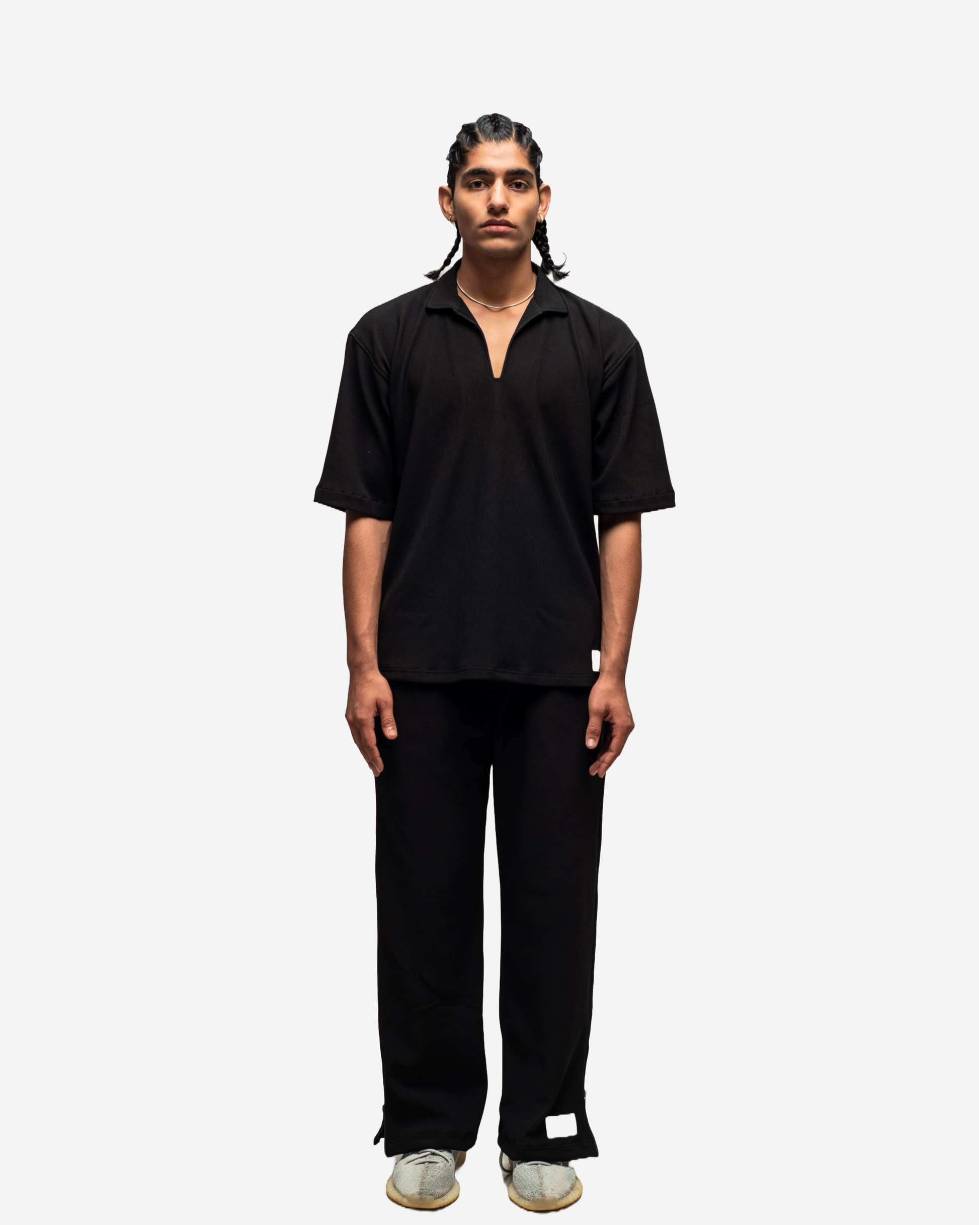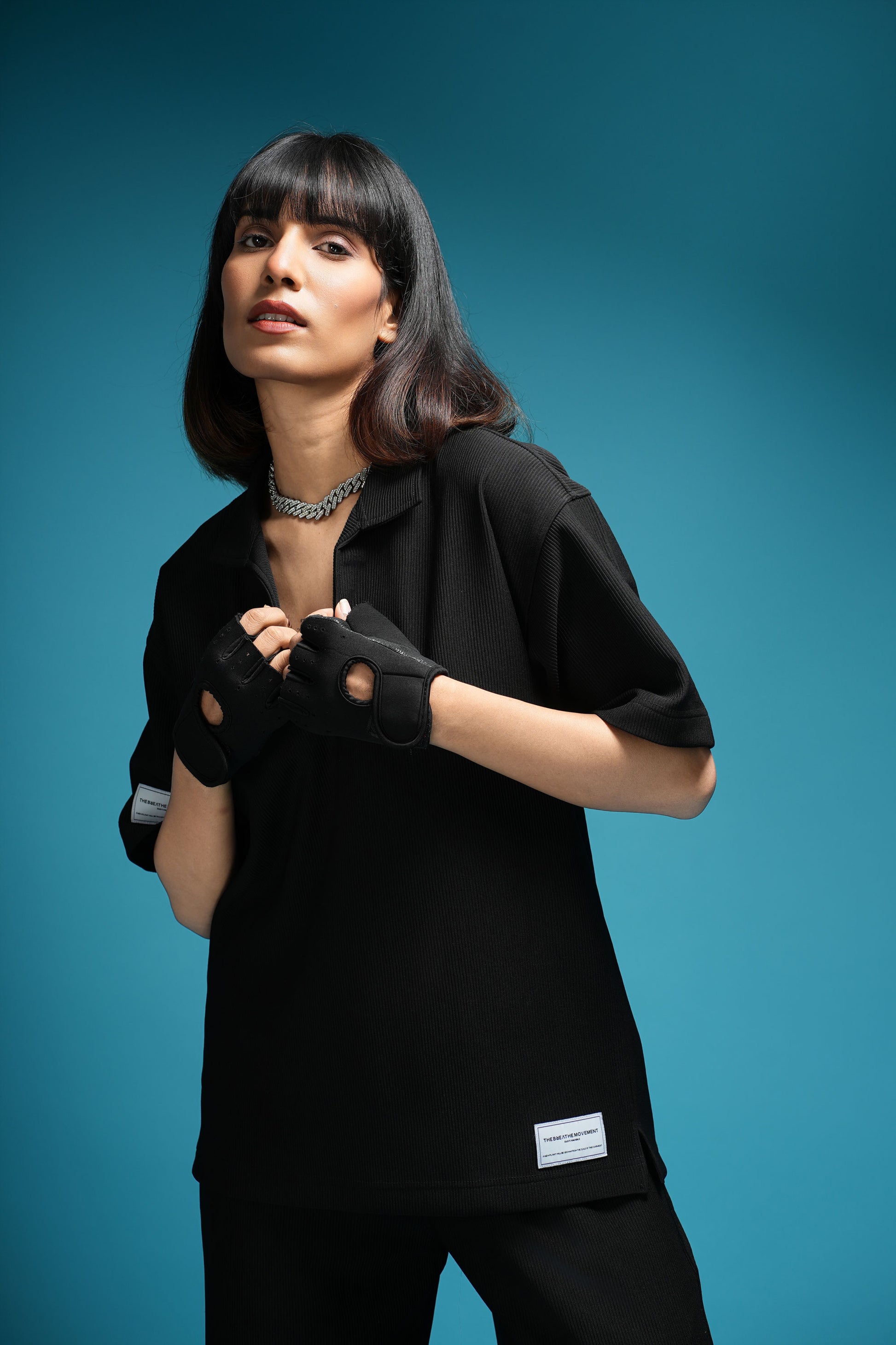 DESIGNED FOR THE MODERN ELITE, THE TBM CORD SET IN DARK BLACK IS YOUR GO-TO FOR FIRST-CLASS TRAVEL, LUXURY GETAWAYS, AND SPORT-LUXE MOMENTS — FROM PRIVATE JETS AND COASTAL GOLF CLUBS TO PADDLE COURTS IN THE SOUTH OF FRANCE. TAILORED IN OUR CUSTOM-DEVELOPED CORD LYCRA FABRIC, USING IMPORTED PREMIUM YARN FROM JAPAN, IT OFFERS UNMATCHED COMFORT, SOFTNESS, STRETCH, AND REFINED STRUCTURE. THE 90S-INSPIRED BOXY TOP AND WIDE-LEG SILHOUETTE EXUDE RELAXED OPULENCE, MAKING IT THE PERFECT STATEMENT FOR THOSE WHO LIVE AND MOVE BOLDLY. FINISHED WITH OUR ICONIC THEBREATHEMOVEMENT LABEL, THIS SET ISN’T JUST WORN — IT’S EXPERIENCED.