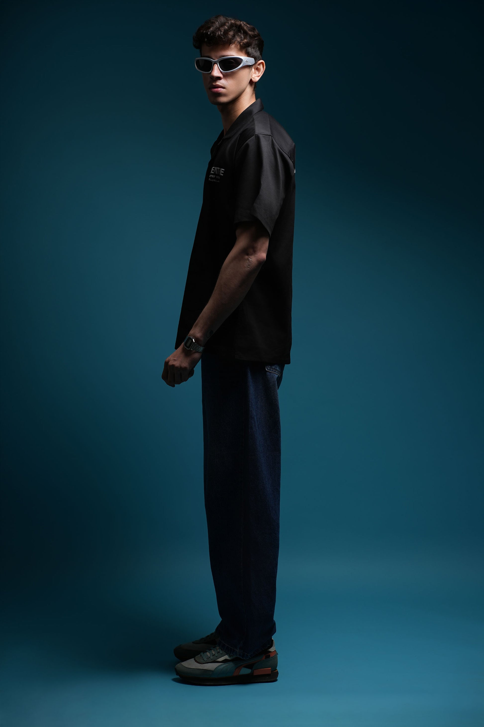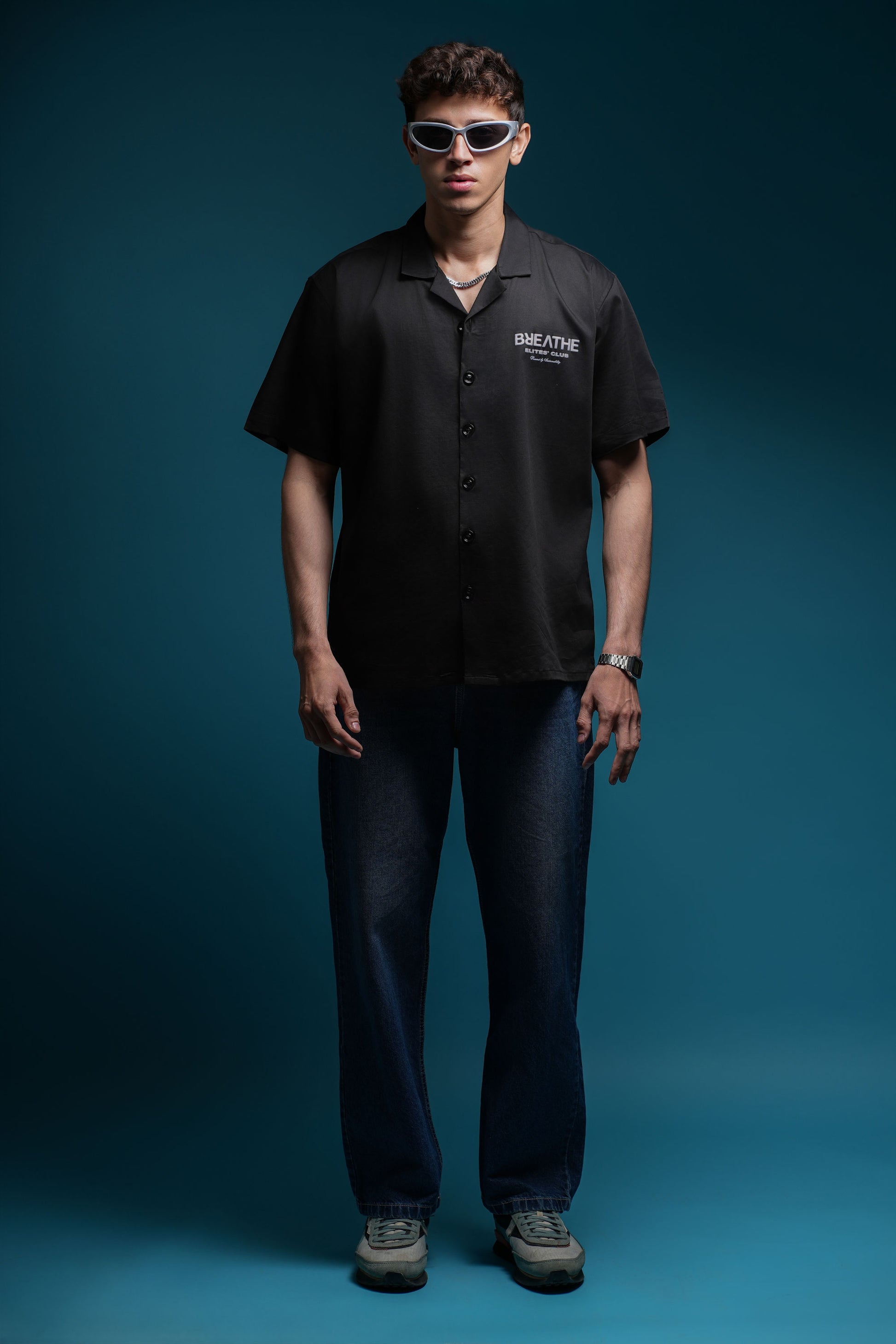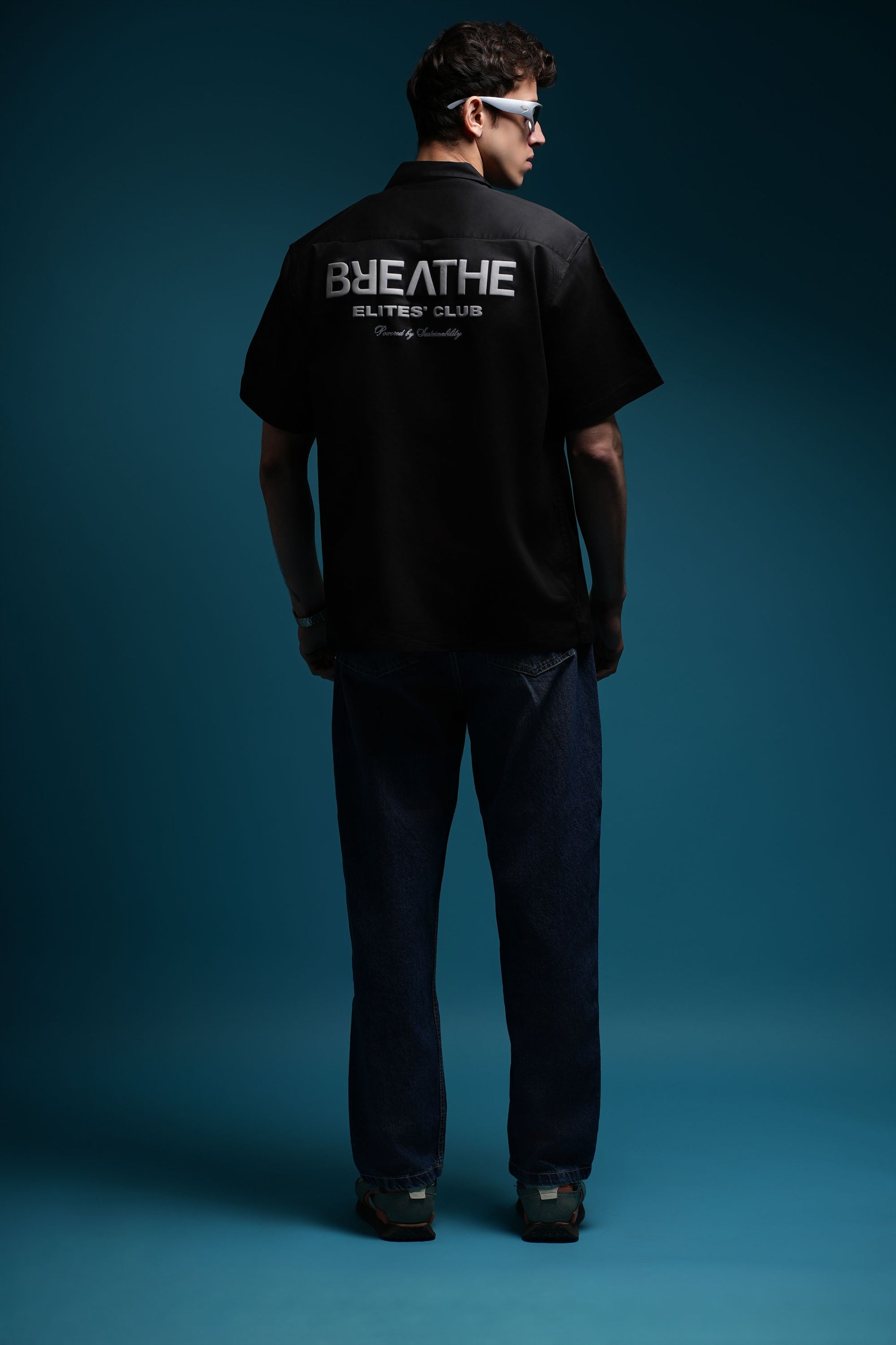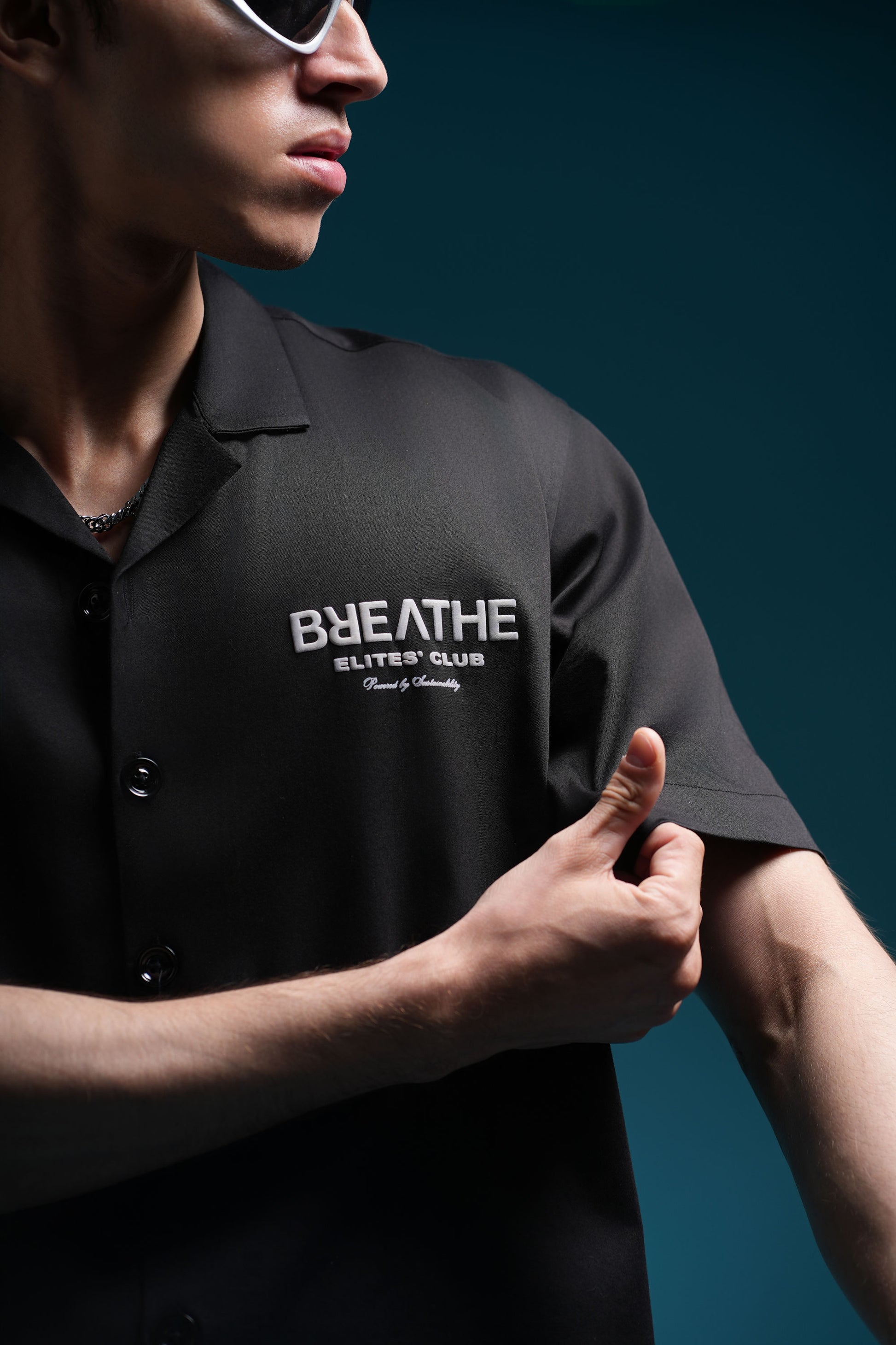 BREATHE BOWLING SHIRTS ARE CRAFTED FROM LUXURIOUS, HIGH-QUALITY TWO WAY SATIN LYCRA FABRIC FOR UNMATCHED COMFORT AND STYLE. THE SOFT, BREATHABLE FABRIC DRAPES EFFORTLESSLY, MAKING IT PERFECT FOR BOTH CASUAL OUTINGS AND UPSCALE EVENT. INSPIRED BY 90S SILHOUETTE, IT IS FLUID YET TAILORED — FINISHED WITH PUFF-PRINTED ARTWORK ON THE FRONT AND BACK THAT RISES SUBTLY OFF THE FABRIC LIKE A WHISPER OF INTENTION. THIS SHIRT CAN BE STYLED OPEN OR BUTTONED-UP.